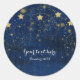 Pegatinas de favor celestial de noche estrellada azul brillante y dorado. Invitaciones a juego disponibles.