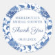 Pegatinas de agradecimiento para boda o baby shower con un patrón de fondo de chinoiserie azul y blanco pintado a mano basado en un patrón visto en un jarrón de jengibre vintage.