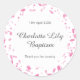 Pegatina Redonda Favor de Bautizo Confeti Rosa
