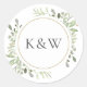 Pegatina Redonda Favor de boda de acuarela Greenery Monogram