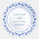 Un diseño de boda elegante con flores azules, diseño que imita la porcelana y caligrafía elegante que puedes personalizar con tus detalles.