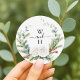 Pegatina Redonda Favor de Boho Monogram Winter Greenery Wedding