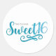 Pegatina Redonda Favor de cumpleaños número 16 turquesa y blanco