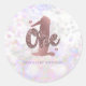 Pegatina Redonda Favor de cumpleaños número uno Iridescent Sparkle