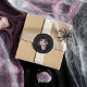 Un diseño de fiesta de compromiso de Halloween chic y espeluznante que presenta una ilustración de cráneo floral coronada con flores de acuarela rosadas y moradas sobre un fondo negro ahumado. Personalice con texto personalizado en un diseño circular. Perfecto para sellar sus invitaciones de fiesta de compromiso o como toque final para los favores.