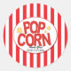 Pegatinas de favor de fiesta de película de rayas rojas y blancas de palomitas de maíz. Invitaciones coincidentes disponibles.