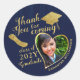 Crea etiquetas de agradecimiento únicas de color azul marino y dorado para los favores de la fiesta de graduación de 2026 con un diseño elegante que incluye una foto en forma de corazón, el nombre del graduado y el año. Esta plantilla facilita la escritura del nombre y año de tu graduado y la carga de una imagen antes de realizar el pedido.