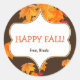 Pegatina Redonda Favor de hojas marrones de otoño elegante