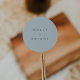Este boda azul claro y redondo pegatina de la colección Low Tide de Navy Road Creative presenta texto minimalista en blanco con un diseño moderno. Perfecto para sellar sobres, decorar favores o acentuar detalles de bodas de playa y destino.