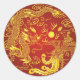 Pegatina Redonda Favor de la Boda China Fénix del Dragón Rojo Oro