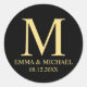 Pegatina Redonda Favor de la Boda Elegante en Monograma Negro y Oro