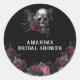 Pegatina Redonda Favor de la ducha nupcial de cráneo floral gótico