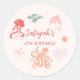 La dulce fiesta de cumpleaños de chica marino favorece al pegatina con ilustracion de animales del océano.