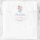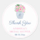 Pegatinas de agradecimiento para cualquier evento (mostradas aquí para una ducha nupcial, pero todos los campos de texto son personalizables). El diseño presenta rosas de jardín rosadas y follaje en un jarrón estilo tarro ginger azul y blanco.