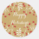 Pegatina Redonda Favor de vacaciones de oro de hojas y bayas blanca