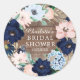 Hermoso adhesivo rústico de madera para fiesta de despedida de soltera con corona floral en azul marino y rosa. ¡Visite nuestra tienda para ver toda nuestra colección floral de azul marino y rosa!