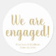 Elegante caligrafía de Personalizado de oro falso Boda de texto regalo pegatinas de etiquetas de favores. Estamos comprometidos. Personalizable, texto clásico y elegante. Texto de oro falso de personalizable completo, fondo blanco. Ideal para la invitación de compromiso o la invitación de recién casados.