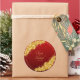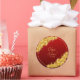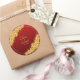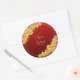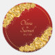 Pegatina Redonda Fecha + Nombres de Novios, Flores Doradas Rojo Gra