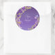 Pegatina Redonda Fecha + Novia, Groom Nombres Flores Malvas Púrpura