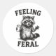 Pegatina Redonda Feeling Feral Raccoon Drink Coffee Funny Trash Pan