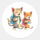 Pegatina Redonda Felices Amigos Que Van A La Escuela