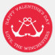 Feliz Día de San Valentín anclas náuticas rojas y blancas, texto personalizado totalmente personalizado, lindos y elegantes Pegatinas clásicos redondos. Personalizar de texto náutico navegación de texto, nombre del capitán, nombre del barco, apellido, etc genial para marineros, barcas, vela y navegación Feliz navegación!