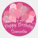 Pegatina Redonda Felices Balones Rosa Y Estrellas Blancas De Cumple