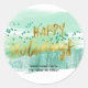 Pegatina Redonda Felices Fiestas Artsy Green Watercolor Gold