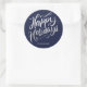 Pegatina Redonda Felices Fiestas Caligráficos con Hoja de Plata Per