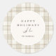 Pegatina Redonda Felices Fiestas de Gingham Beige Suave
