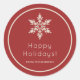 Pegatina Redonda Felices Fiestas de Navidad Copo de Nieve Rojo y Cr