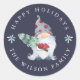 Pegatina Redonda Felices Fiestas Gnomo Árbol de Navidad