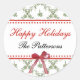Happy Holidays Mistletoe Red Bow Personalizado Christmas Stickers Labels presenta un elegante y elegante mistletoe floral color agua verde acentuado con un arco rojo con el texto "Happy Holidays" en la moderna tipografía de escritura caligráfica y personalizado con tu nombre familiar o texto personalizado. Añada un toque elegante y elegante de estilo vacacional a sus regalos de vacaciones, empaque de Navidades, favores de fiesta, envoltura personalizada de regalo, tarjetas de vacaciones y cierres de sobres, sellos de regalo y detalles de fiesta de vacaciones con estos pegatinas personalizados que están disponibles en múltiples formas y tamaños. También perfecto para usar como marca festiva para artículos caseros y regalos hechos a mano. Diseñado por ©2025 Evco Studio www.zazzle.com/store/evcostudio