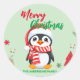 Pegatina Redonda Felices fiestas navideñas en el pingüino de Santa