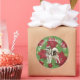 Pegatina Redonda Felices fiestas Pegatina, Husky, Flores
