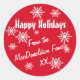 Pegatina Redonda Felices fiestas rojas y copos de nieve
