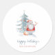 Pegatina Redonda Felices fiestas, Santa Claus, Pine Tree
