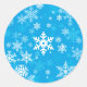 Pegatina Redonda Felices fiestas Snowflakes Patrón azul Todos