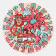 Pegatina Redonda Felices hippie cumpleaños color retro