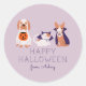 Pegatina Redonda Felices Mascotas de Halloween con traje
