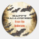 Pegatina Redonda Felices murciélagos de Halloween y pergamino quema