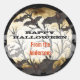 Pegatina Redonda Felices murciélagos de Halloween y pergamino quema