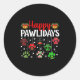 Pegatina Redonda Felices Pawlidays Navidades divertidos Perro Paw N