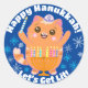 Pegatina Redonda Felices Pegatinas de Menorah, un gato lindo en Han