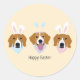 Pegatina Redonda Felices Perros Beagle de Pascua