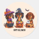 Pegatina Redonda Felices perros Dachshund de Halloween