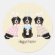 Ilustracion de Perro Montañés de Bernese vestido con traje de Pascua con orejas de conejo y huevos de Pascua. Perfecto para los amantes del perro y los padres mascotas para Pascua.
