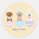 Pegatina Redonda Felices perros recuperadores de oro de Pascua