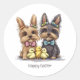 Pegatina Redonda Felices Perros Terrier de Yorkshire en Pascua