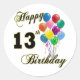 Pegatina Redonda Felices regalos de cumpleaños número 13 y ropa de